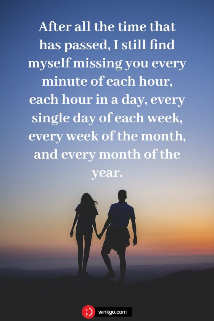 “After all the time that has passed, I still find myself missing you every minute of each hour, each hour in a day, every single day of each week, every week of the month, and every month of the year.” – Unknown