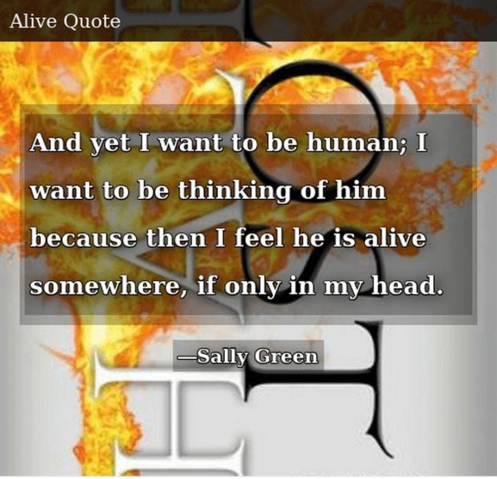 “And yet I want to be human; I want to be thinking of him because then I feel he is alive somewhere, if only in my head.” – Sally Green