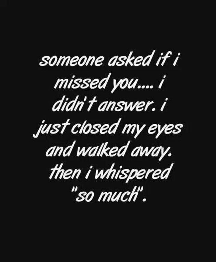 “Someone asked me if I missed you. I didn’t answer. I just closed my eyes and walked away and whispered ‘so much’.” – Unknown