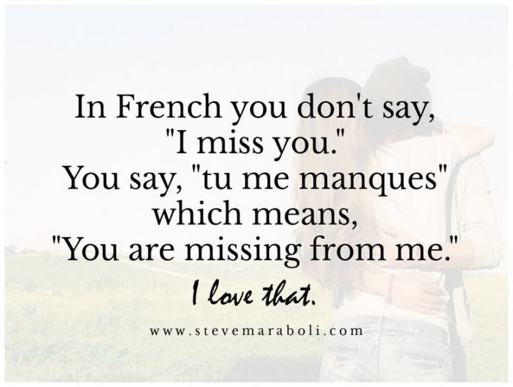 “In French, you don’t really say ‘I miss you’, you say ‘Tu me manques’ which means ‘You are missing from me’. I love that.”