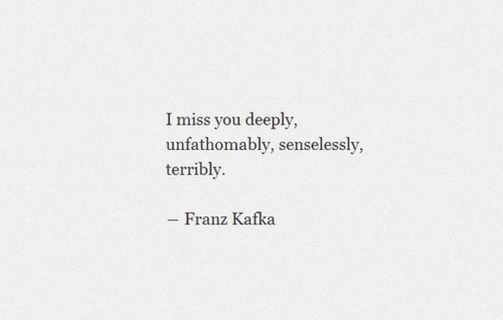 “I miss you deeply, unfathomably, senselessly, terribly.” – Franz Kafka