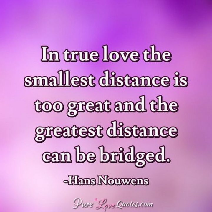 “In true love, the smallest distance is too great, and the greatest distance can be bridged.” – Hans Nouwens