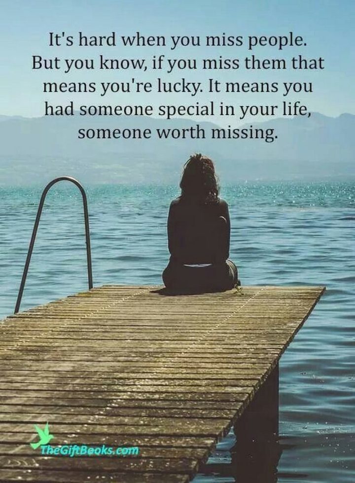 “Missing someone is your heart’s way of reminding you that you love them.” – Unknown