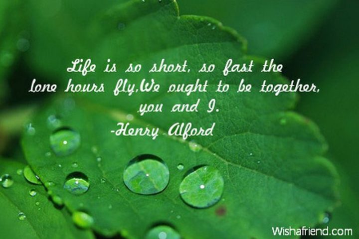 “Life is so short, so fast the lone hours fly, we ought to be together, you and I.” – Henry Alford