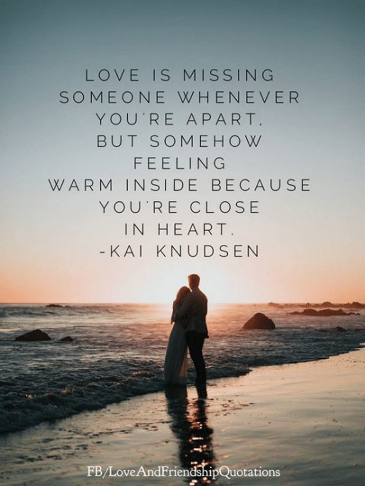 “Love is missing someone whenever you’re apart, but somehow feeling warm inside because you’re close in heart.” – Kay Knudsen
