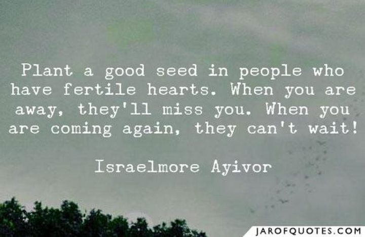 “Plant a good seed in people who have fertile hearts. When you are away, they’ll miss you. When you are coming again, they can’t wait!” – Israelmore Ayivor