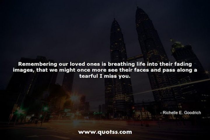 “Remembering our loved ones is breathing life into their fading images, that we might once more see their faces and pass along a tearful I miss you.” – Richelle E. Goodrich