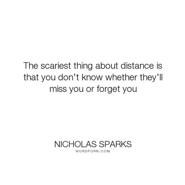 “The scary thing about distance is you don’t know whether they’ll miss you or forget you.” – Nicolas Sparks