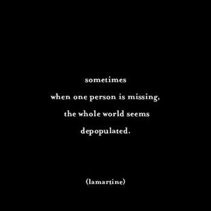 “Sometimes, when one person is missing, the whole world seems depopulated.” – Lamartine