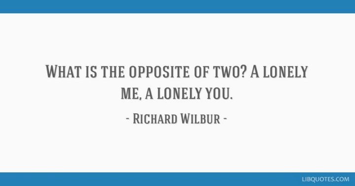 “What is the opposite of two? A lonely me, a lonely you.” – Richard Wilbur