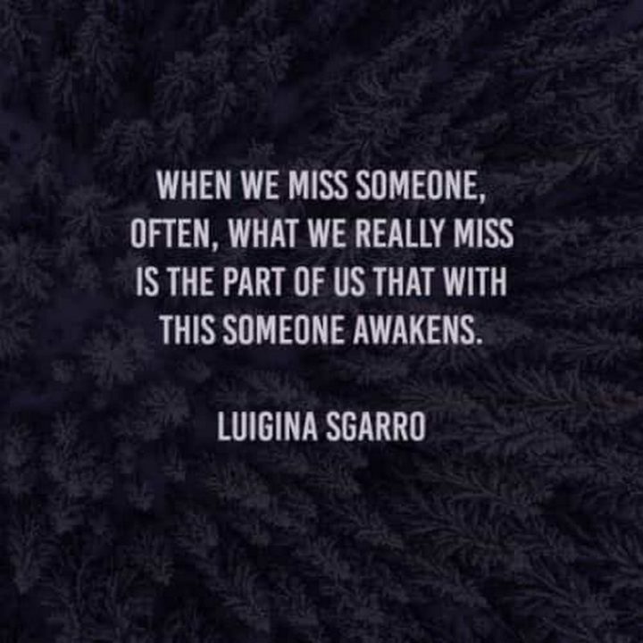 “When we miss someone, often, what we really miss is the part of us that with this someone awakens.” – Luigina Sgarro