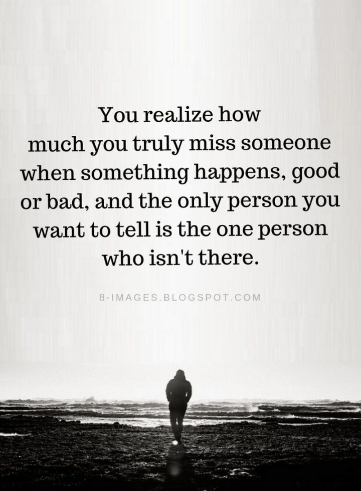 “You realize how much you truly miss someone when something happens, good or bad, and the only person you want to tell is the one person who isn’t there.” – Unknown