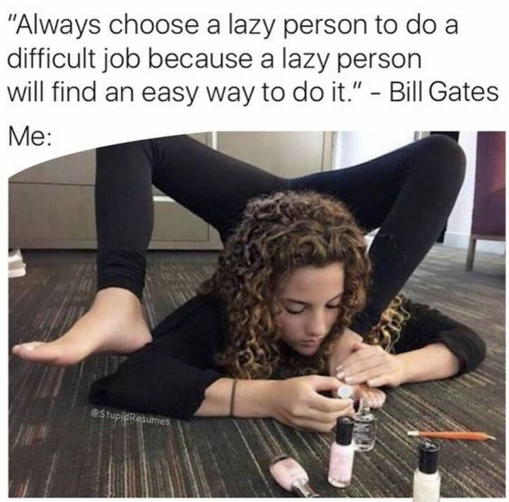 “Always choose a lazy person to do a difficult job because a lazy person will find an easy way to do it.” – Bill Gates