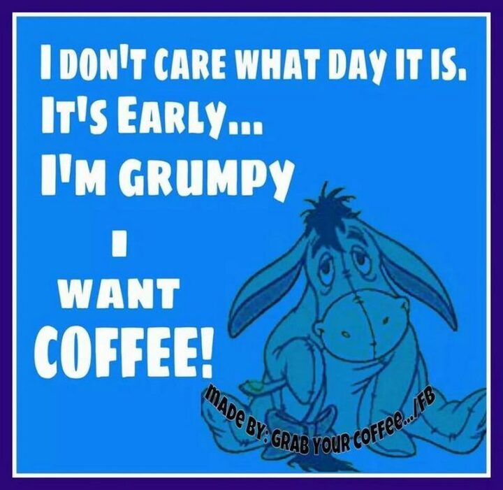 “I don’t care what day it is. It’s early…I’m grumpy…I want coffee!”