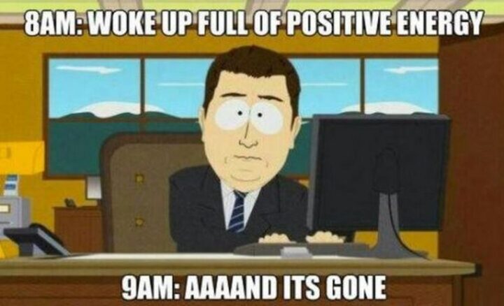 “8 am: Woke up full of positive energy. 9 am: And it’s gone.”