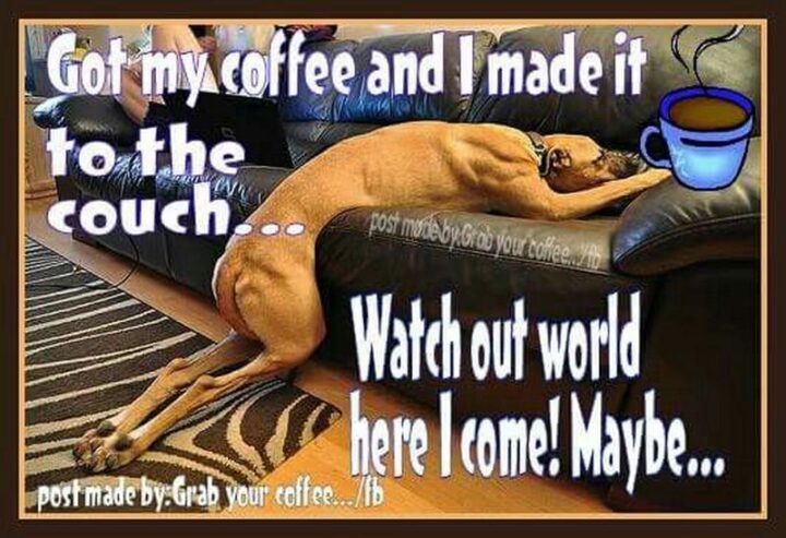 “Got my coffee and I made it to the couch…Watch out world, here I come! Maybe…”