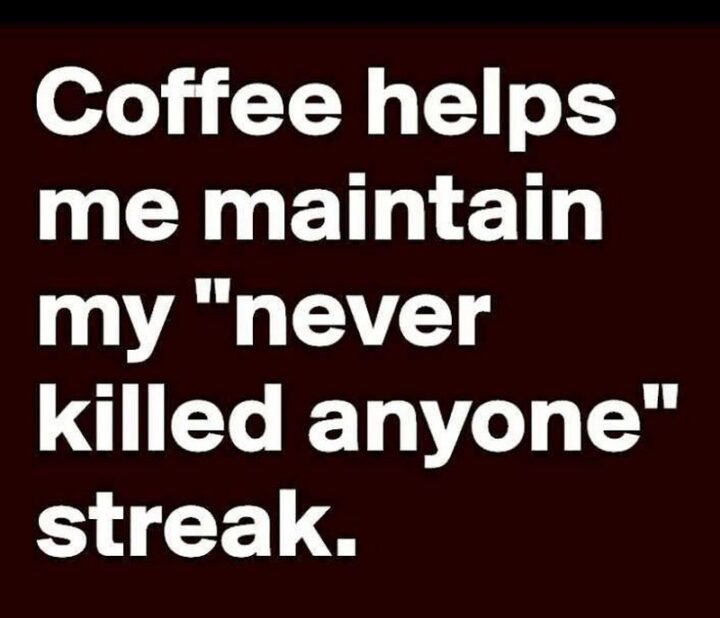 “Coffee helps me maintain my “never killed anyone” streak.”