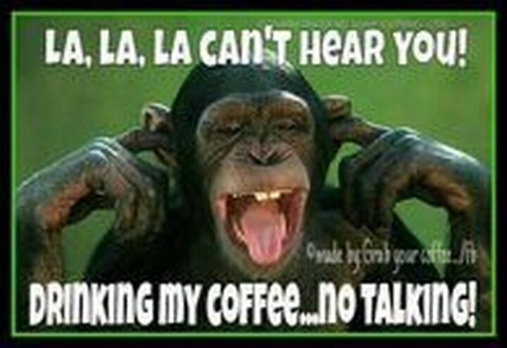 “La, la, la. Can’t hear you! Drinking my coffee…No talking!”