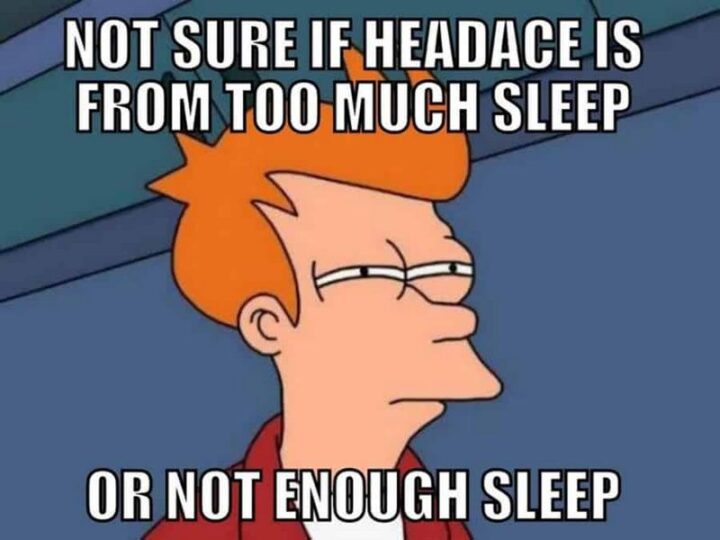 “Not sure if my headache is from too much sleep of not enough sleep.”