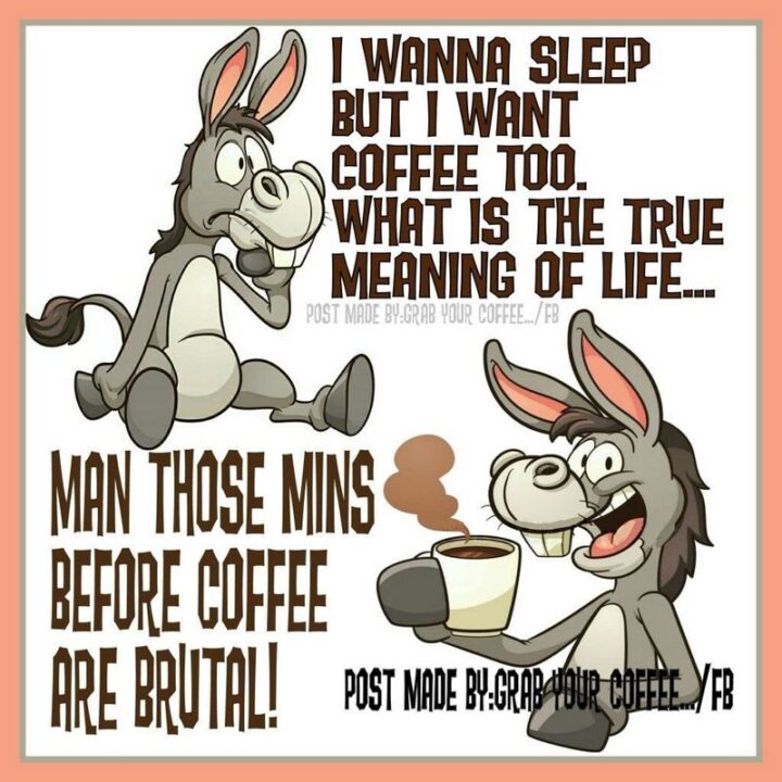 “I wanna sleep but I want coffee too. What is the true meaning of life…Man those minutes before coffee are brutal!”