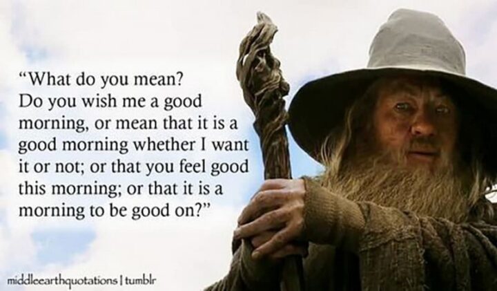 “What do you mean? Do you wish me a good morning, or mean that it is a good morning whether I want it or not; or that you feel good this morning; or that it is a morning to be good on?”