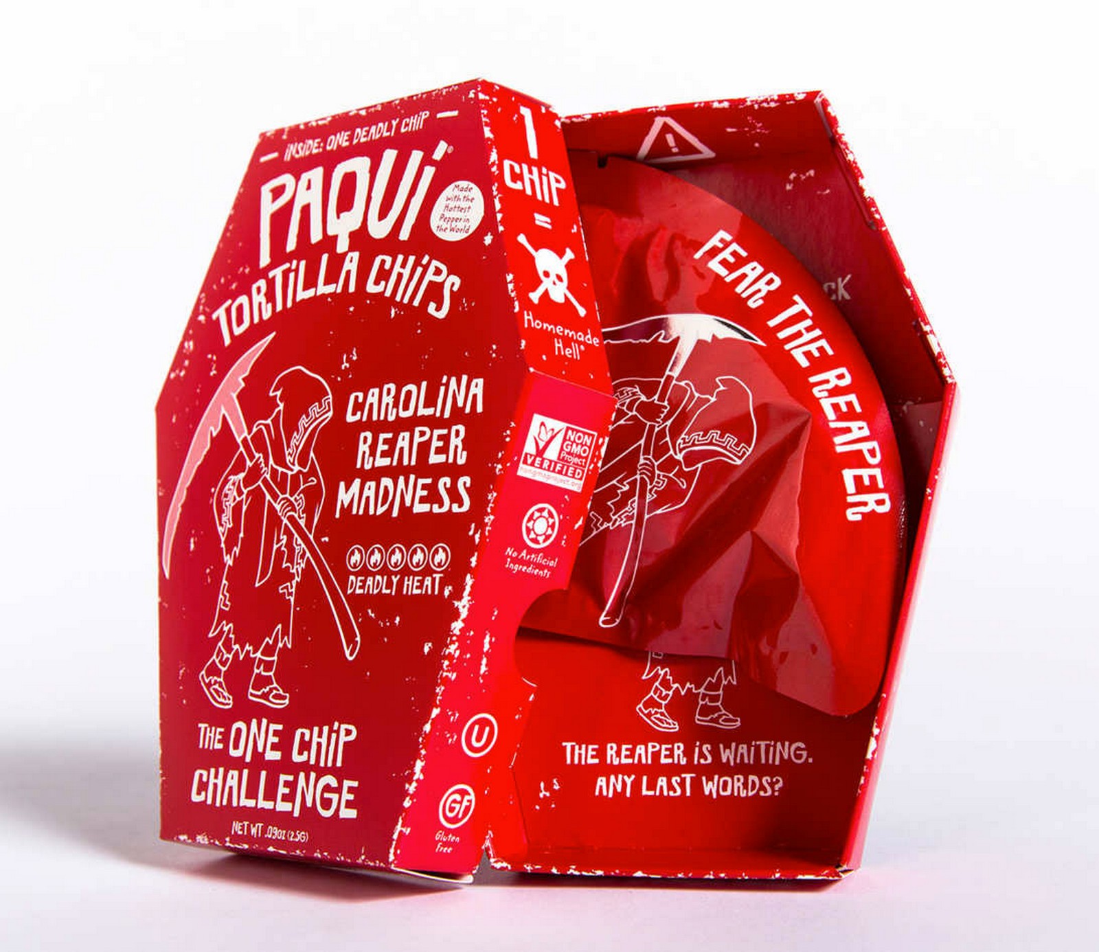 Paqui Chips are well-known for their gourmet tortilla chips; however, it’s one chip in particular that is having even the most die-hard pepper heads reaching for a tall glass of milk! Called the ‘One Chip Challenge,’ Paqui Chips challenges customers to try the spiciest tortilla chip on earth, the Carolina Reaper Madness chip. The chip is made from Carolina Reaper peppers which are certified by Guinness World Records as the hottest peppers on earth.