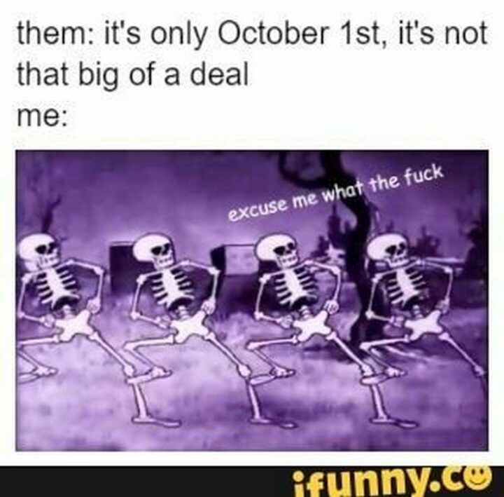 !["Them: It's only October 1st, it's not that big of a deal. Me: Excuse me what the [censored]."](https://www.winkgo.com/wp-content/uploads/2022/09/october-memes-48-720x709.jpg)