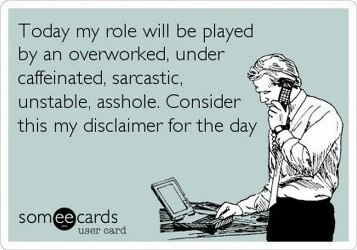 “Today my role will be played by an overworked, under-caffeinated, sarcastic, unstable, [censored]. Consider this my disclaimer for the day.”