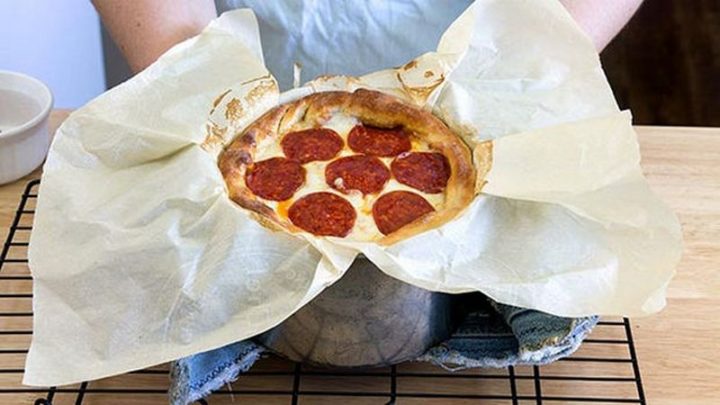 Enter Pillsbury. Last week, they posted a recipe with photo instructions on how to build the ultimate pepperoni pizza cake at home. You also don’t need any fancy kitchen gadgets, only a tall 6″ springform pan (4 inches tall is fine). Here’s a rundown of how to build it: