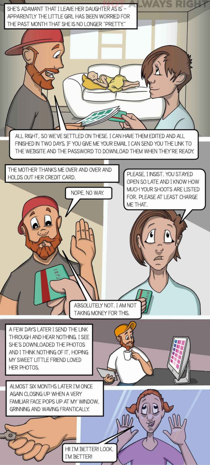 It is a true story that was originally shared on the ‘Not Always Right‘ website. The post is entitled “That is ‘Pretty’ Awesome” and after reading this illustrated story, you’ll probably agree it’s pretty awesome as well. Just like this other comic about a young boy and his three-legged dog, get ready for a roller coaster of emotions.