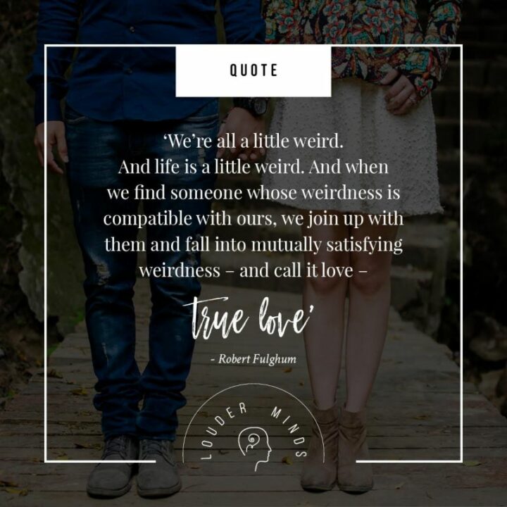 1) “We’re all a little weird. And life is a little weird. And when we find someone whose weirdness is compatible with ours, we join up with them and fall into mutually satisfying weirdness – and call it love – true love.”