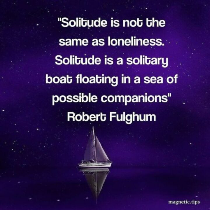 15) “Solitude is not the same as loneliness. Solitude is a solitary boat floating in a sea of possible companions.”