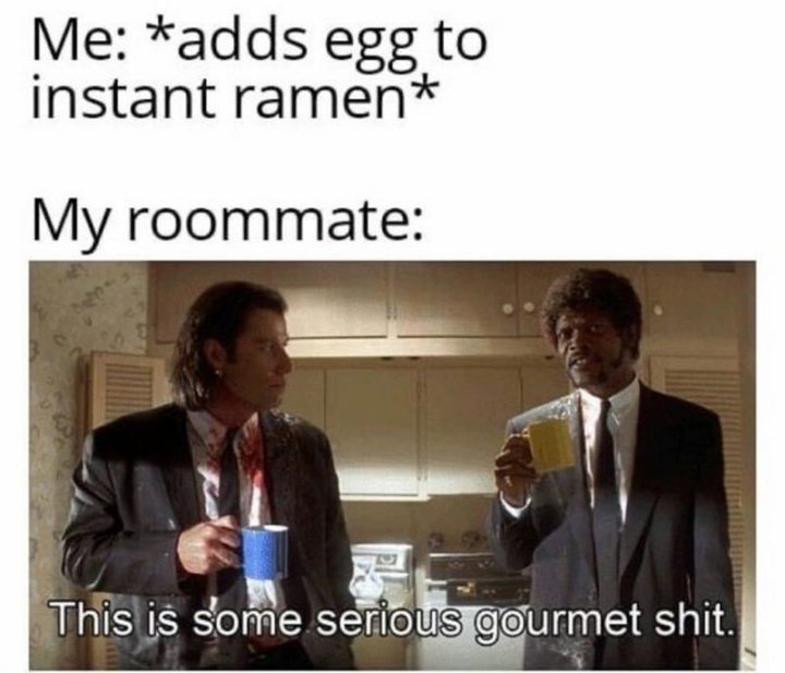 !["Me: *adds an egg to instant ramen*. My roommate: This is some serious gourmet [censored]."](https://www.winkgo.com/wp-content/uploads/2020/08/roommate-memes-01-720x617.jpg)