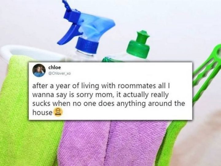 “After a year of living with roommates all I wanna say is sorry mom, it actually really sucks when no one does anything around the house.”