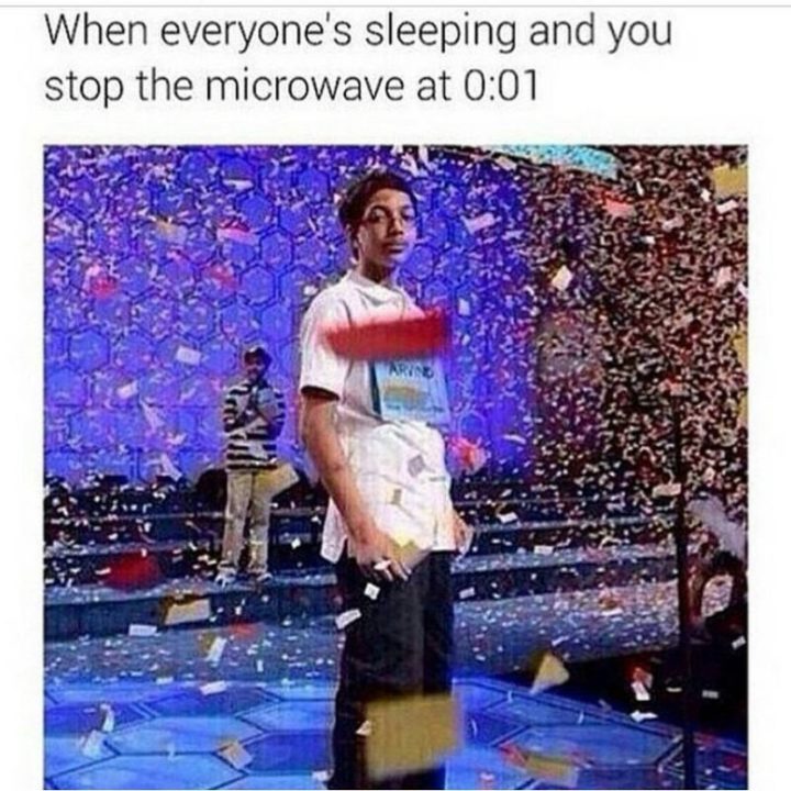 “When everyone’s sleeping and you stop the microwave at 0:01.”