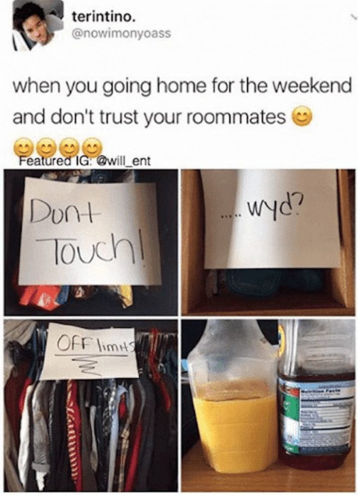 “When you go home for the weekend and don’t trust your roommates: Don’t touch! What are you doing? Off-limits.”