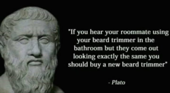 “If you hear your roommate using your beard trimmer in the bathroom but they come out looking exactly the same you should buy a new beard trimmer.” – Plato