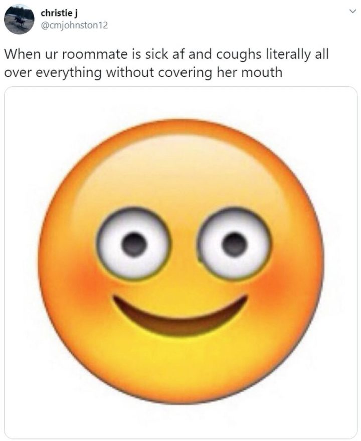 “When your roommate is sick AF and coughs literally all over everything without covering their mouth.”