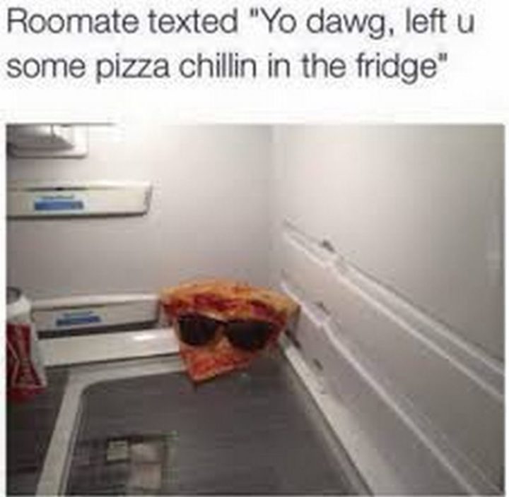 “Roommate texted, ‘Yo dog, left u some pizza chilling in the fridge.”