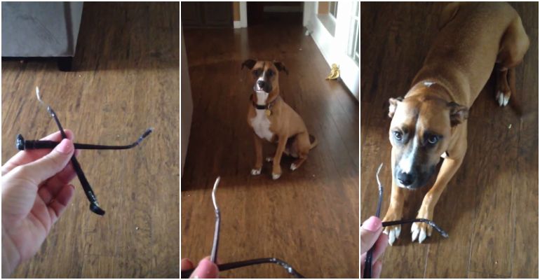 Watch Rooney the dog looking guilty as his human shows him her chewed up glasses…