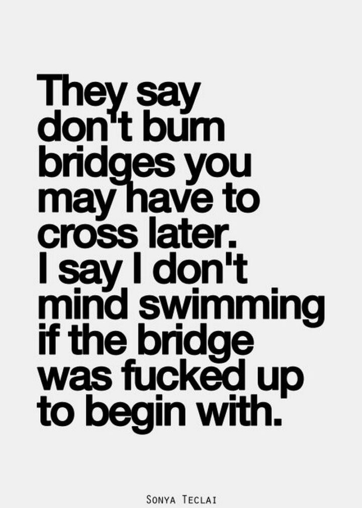 “They say don’t burn bridges you may have to cross later. I say I don’t mind swimming if the bridge was [censored] up to begin with.”