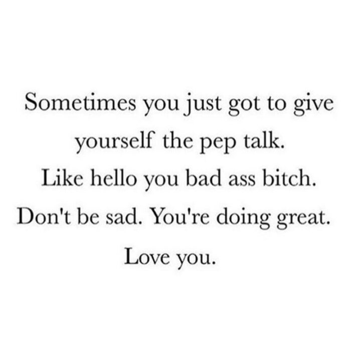 “Sometimes you just got to give yourself the pep talk. Like hello, you badass [censored]. Don’t be sad. You’re doing great. Love you.”