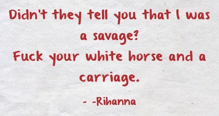 “Didn’t they tell you that I was a savage? [censored] your white horse and a carriage.” – Rihanna