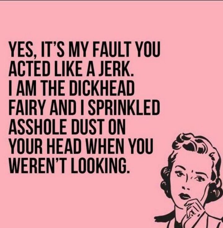 !["Yes, it's my fault you acted like a jerk. I am the [censored] fairy and I sprinkled [censored] dust on your head when you weren't looking."](https://www.winkgo.com/wp-content/uploads/2021/11/sassy-quotes-67-720x738.jpg)
