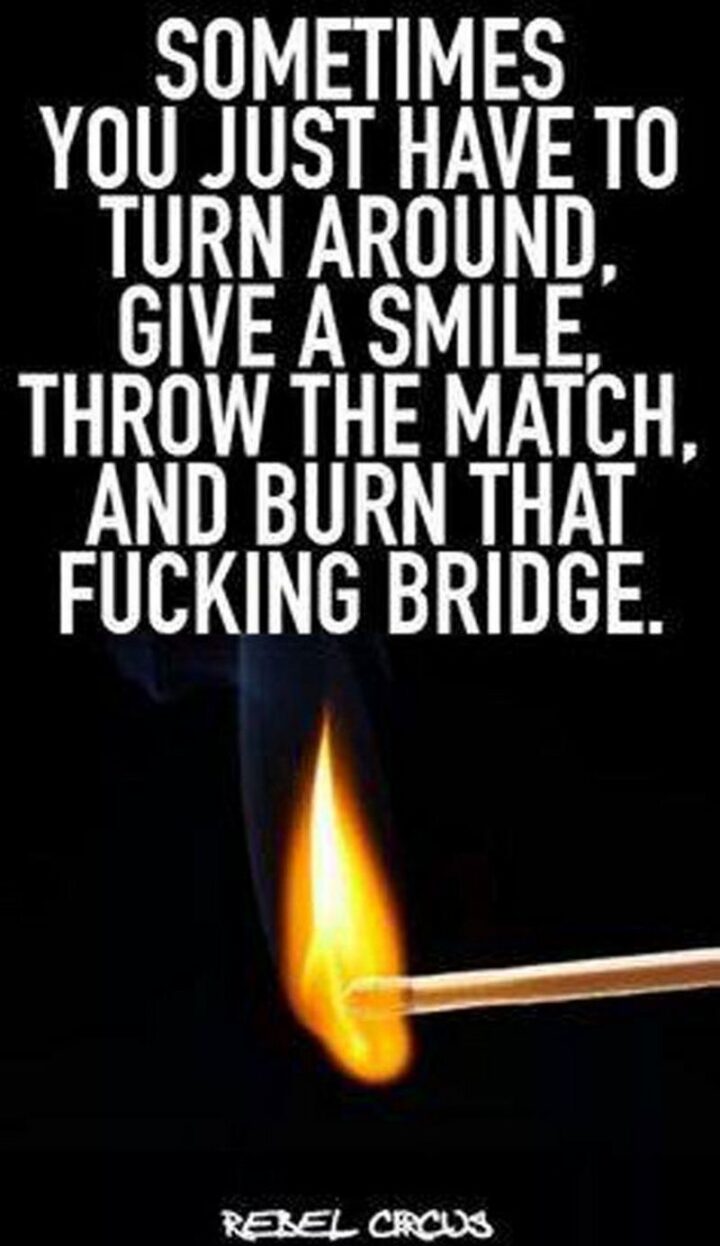 “Sometimes you just have to turn around, give a smile, throw the match, and burn that [censored] bridge.”