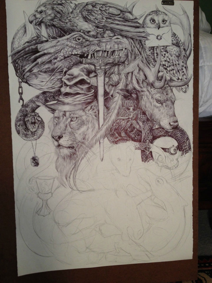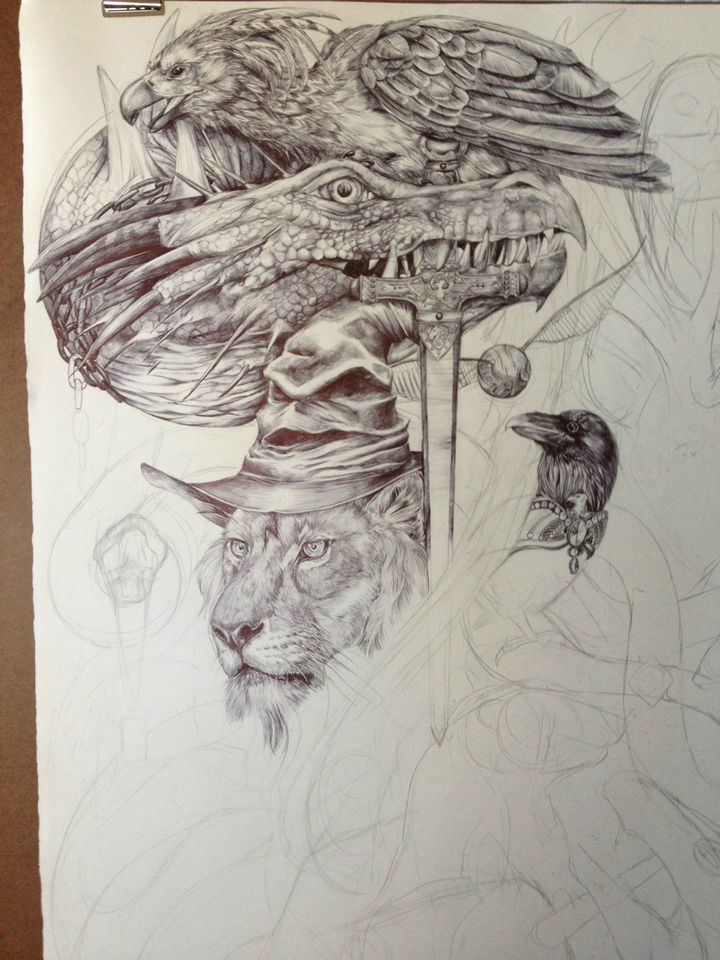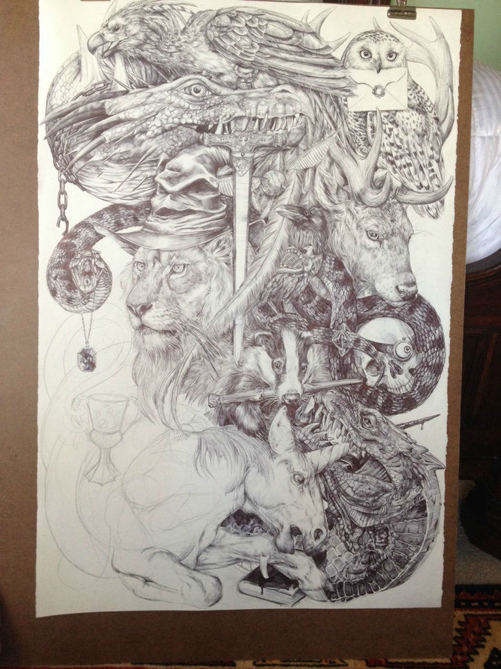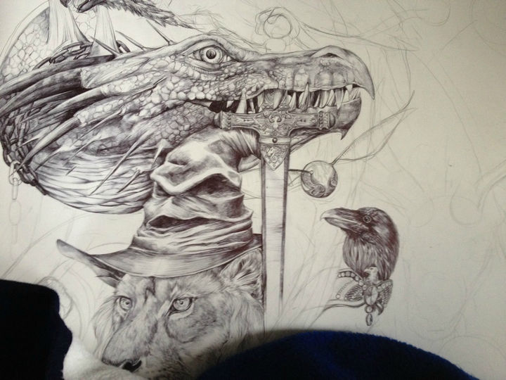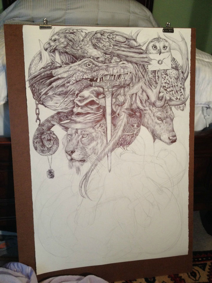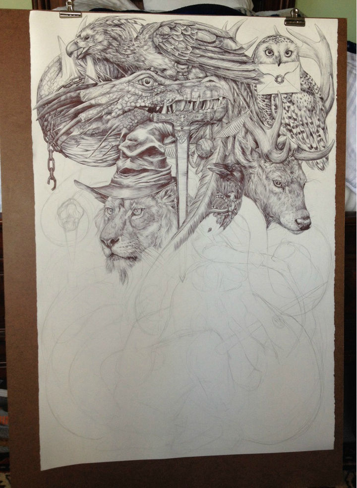 By day 6, Fawkes the Phoenix was sketched and detailed and is now completed.