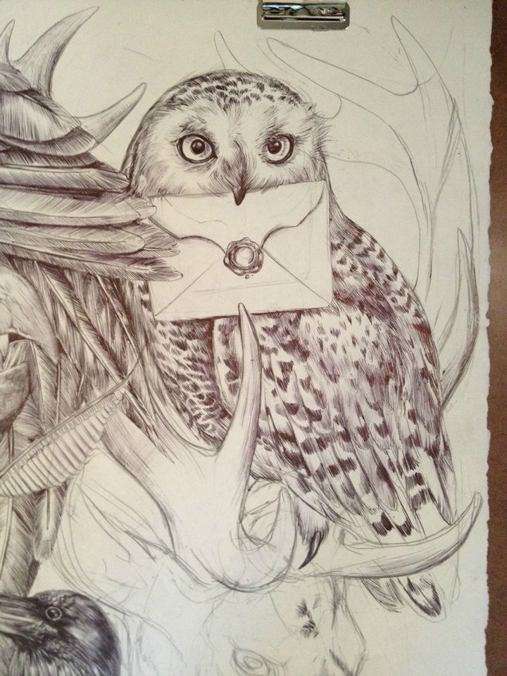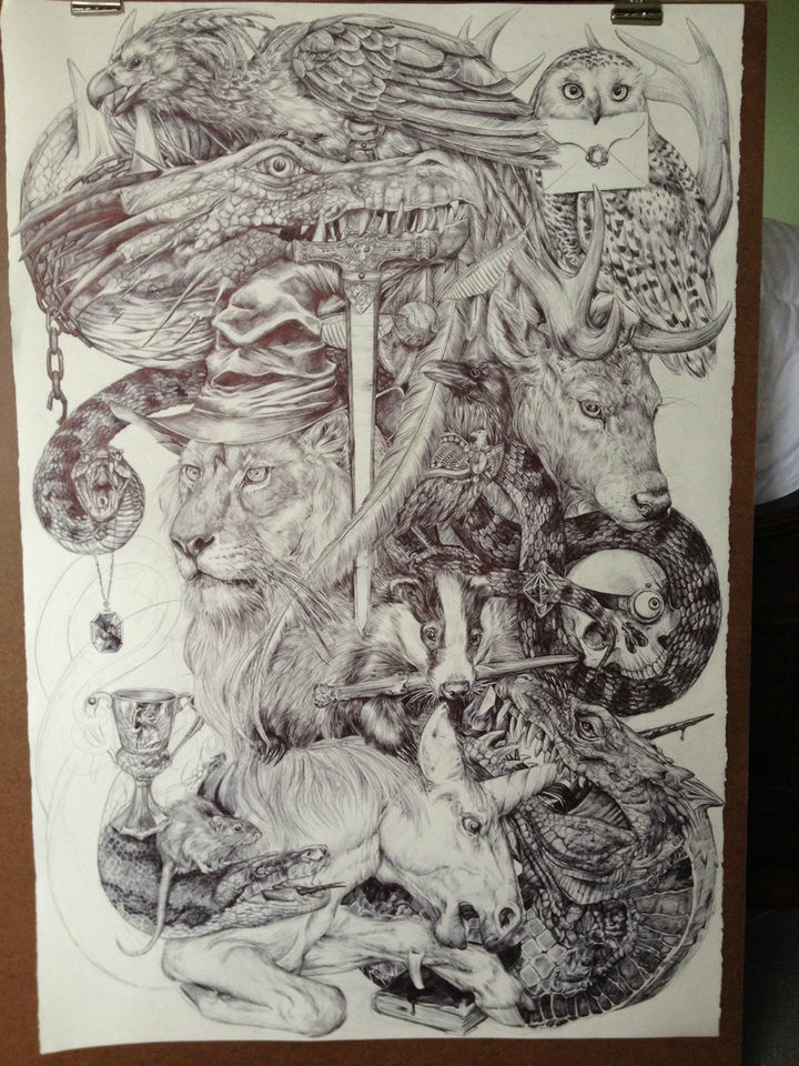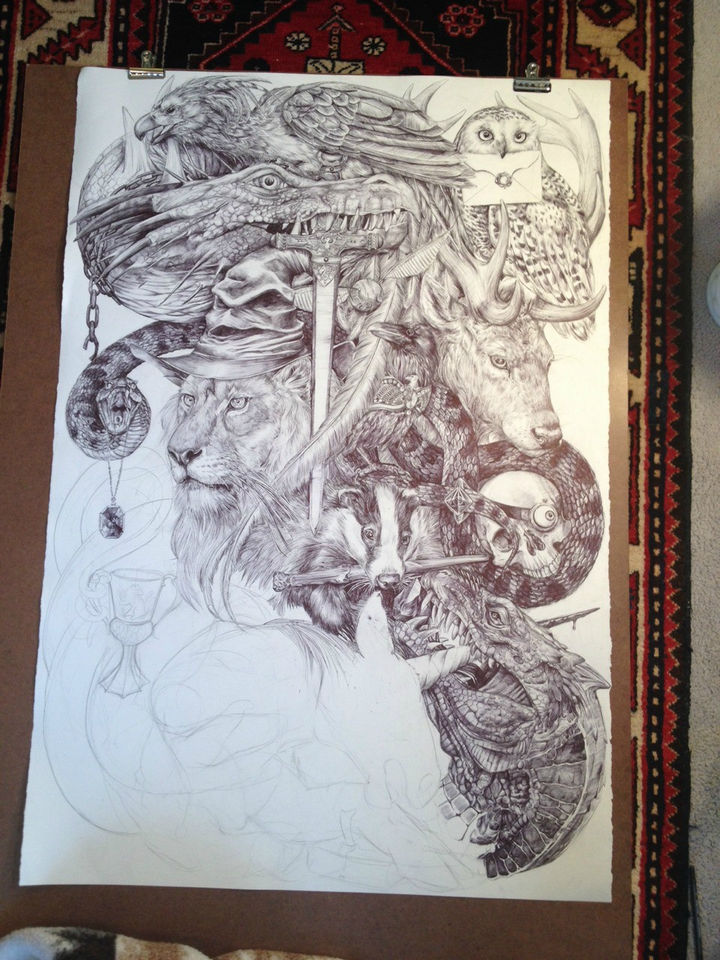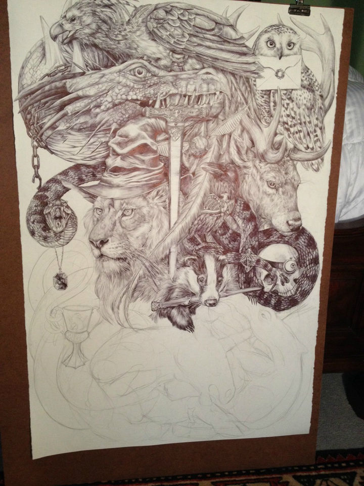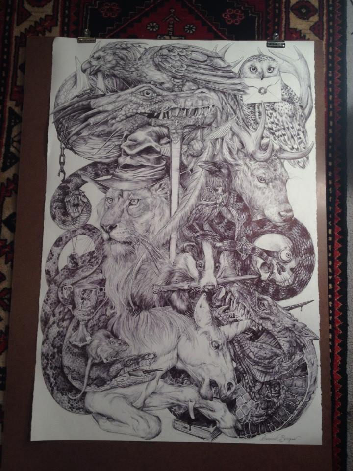 By day 6, Fawkes the Phoenix was sketched and detailed and is now completed.