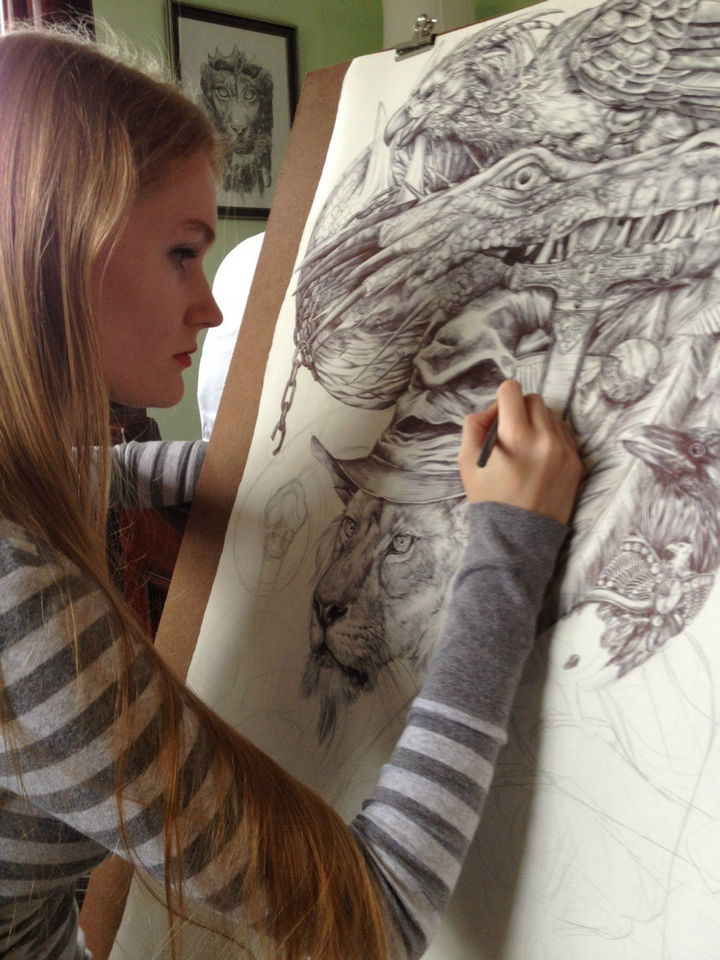 A talented 19-year-old artist, Savannah Burgess, creates incredible prints but what makes some of them even more incredible is that she uses only a ballpoint pen to create unbelievable works of art. She begins with a rough sketch and painstakingly draws in the details to create elaborate and beautiful prints.