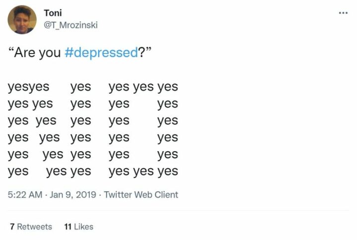 But first, let’s get one thing out of the way: Depression is no laughing matter. We are in no way poking fun at seasonal depression but instead offering some much-needed humor for people that may be experiencing anxiety and/or depression. So take a break and enjoy these 33 memes and tweets!