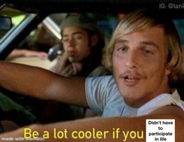 5) “Be a lot cooler if you didn’t have to participate in life.”